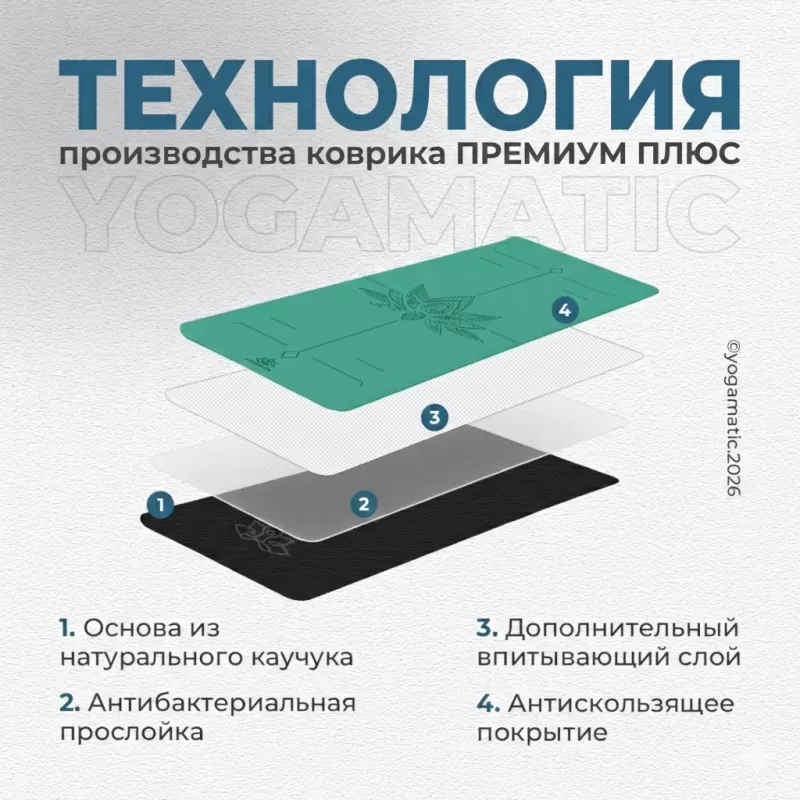Как часто вы не получали желаемого результата от занятия только из-за коврика для йоги, который постоянно скользит? С ковриком Yogamatic Премиум Плюс из природного каучука со специальным впитывающим антискользящим покрытием вы забываете о дискомфорте, потому что:
